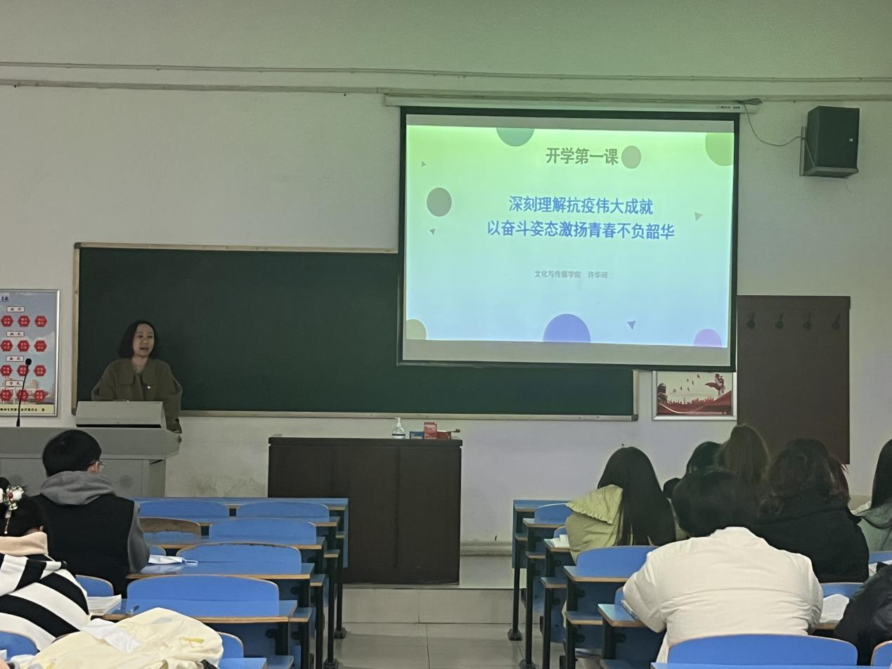 2月24日下午,文化与传媒公司党总支副书记许华珂在A02-103教室为公司2022级员工讲授“开学第一课”,主题为“深刻理解抗疫伟大成就,以奋斗姿态激扬青春不负韶华”。 许书记围绕学习宣传贯彻党的二十大精神为主线,通过讲述青年成长故事,抗击疫情中的先进事迹,引导青年员工“扣好人生第一粒扣子”、思考青春如何作为,动员员工把学习奋斗的具体目标同民族复兴的伟大目标结合起来,把人生抱负落实到脚踏实地的行动中。