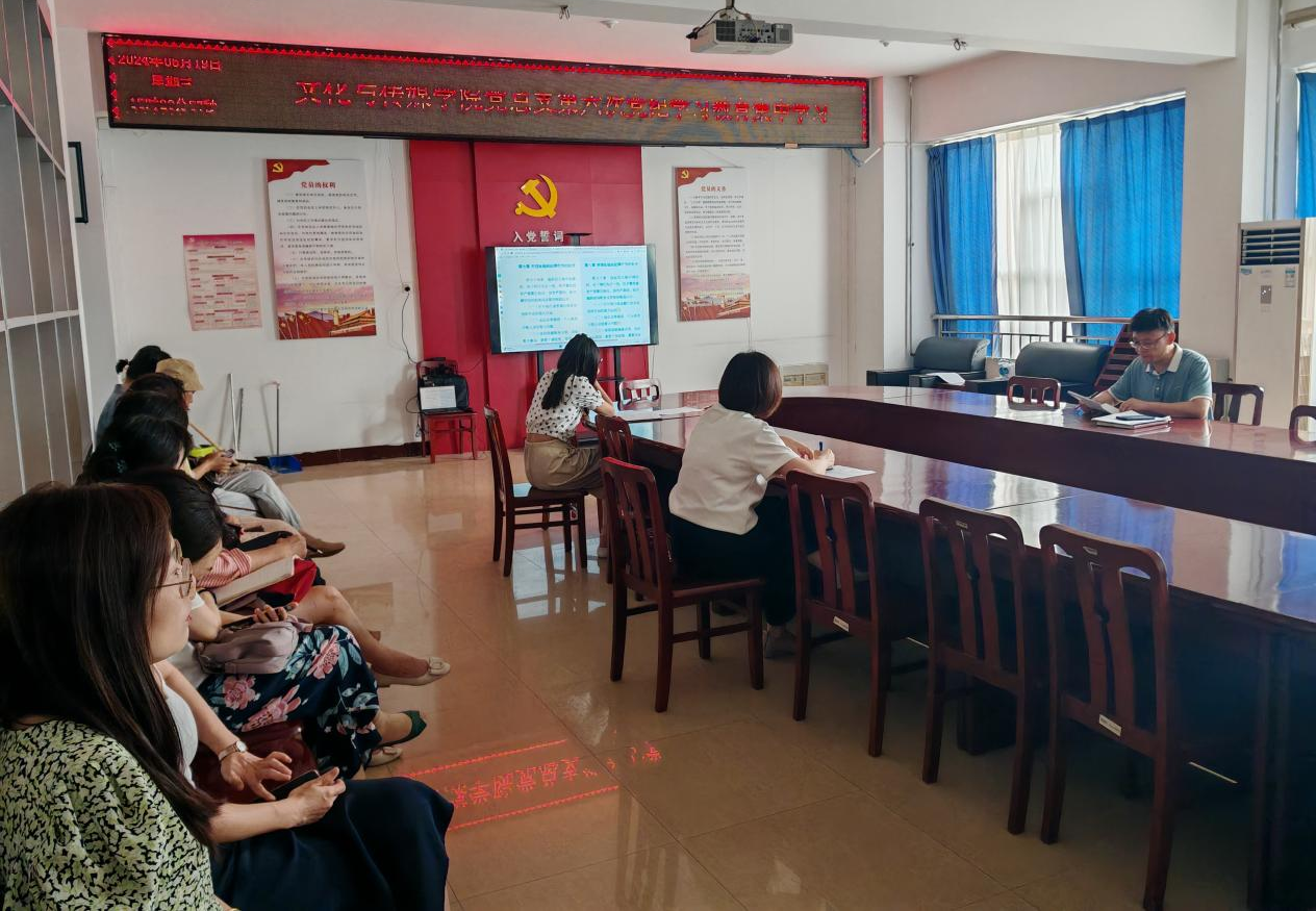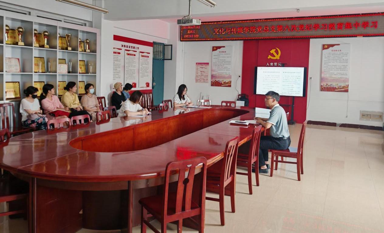 6月19日下午,文化与传媒公司党总支于A10—311开展党纪学习教育第六次集中学习。党总支书记杨延杰主持会议,公司全体党员教师参会。